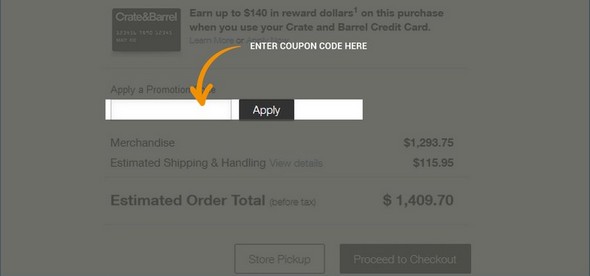 Crate & Barrel Reward Program | Crate & Barrel THE EARLY BLACK FRIDAY DOUBLE REWARDS EVENT: 11/10-11/15 ONLY earn 10% 20% back in reward dollars *. on merchandise purchases at Crate & Barrel, Crate & Kids, and CB2. Crate & Barrel Coupons and Promo Codes | Nov 2022 - Slickdeals Crate and Barrel Coupons and Promo Codes for November 2022 44 Used Today Get Offer 60% off Sale Get Up to 60% Off Clearance 2022 Offer Verified!6 Used Today Get Offer 40% off Sale Take Up to 40% Off Staub Cookware & Bakeware Offer Verified!2 Used Today Get Offer 20% off Sale Get Over 20% Off Select Global Cutlery Offer Verified!1 Used Today Crate And Barrel Welcome To The Neighborhood Coupon October 2022 Crate And Barrel Welcome To The Neighborhood Coupon; Get An Additional 10% Reduction $100 Or More Kids Products At Crate And Barrel; Up To 50% Discount Clearance Items Coupon; Crate And Barrel Online Codes : Discover 15% Reduction All Online Purchases; Crate And Barrel Goodly Savings At Crate And Barrel : Save Up To 60% Off Select Kids Spring Sale 70% Off Crate and Barrel Coupons & Promo Codes - Oct 2022 - DontPayFull.com 15% Off Sitewide for Crate & Barrel Cardholders Get code 1N601 Details & terms 15% Off Code 15% Off Sitewide for Cardholders Get code ARD15 Details & terms 20% Off Deal 20% Off Select Kitchen Items Get deal Details & terms Up To 30% Off Deal Up to 30% Off Fave Kitchen Brands Orders Get deal Details & terms Free Shipping Deal